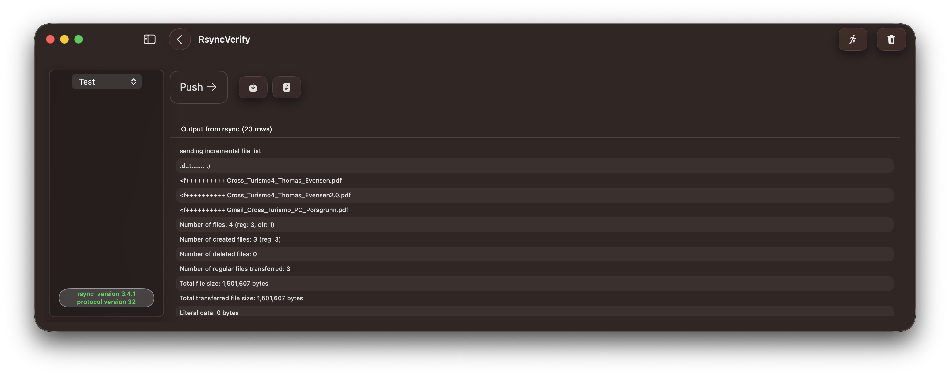 This application is currently in development. The majority of the code is derived from the code base of RsyncUI, and there are some new code modules associated with the Verify Remote function. Additionally, some new views have been added for evaluation purposes.