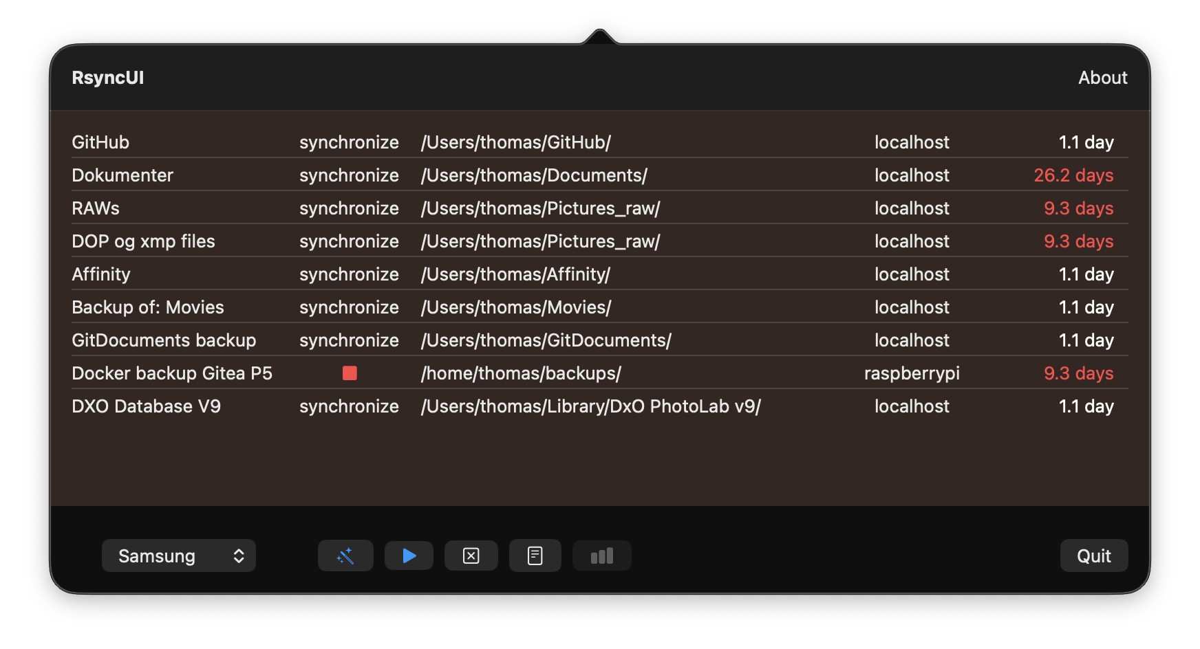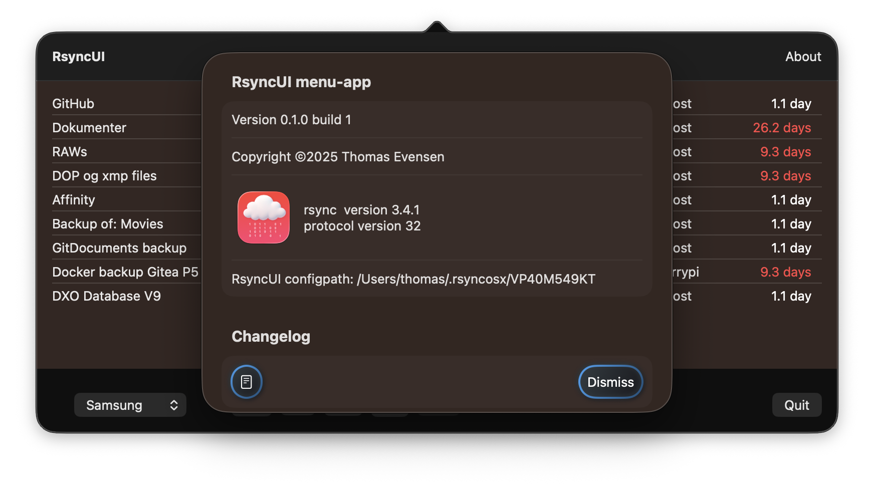 I have commenced the development of a menu bar version of RsyncUI. The primary objective of this application is to remain on the menu bar and provide effortless access to data synchronization.