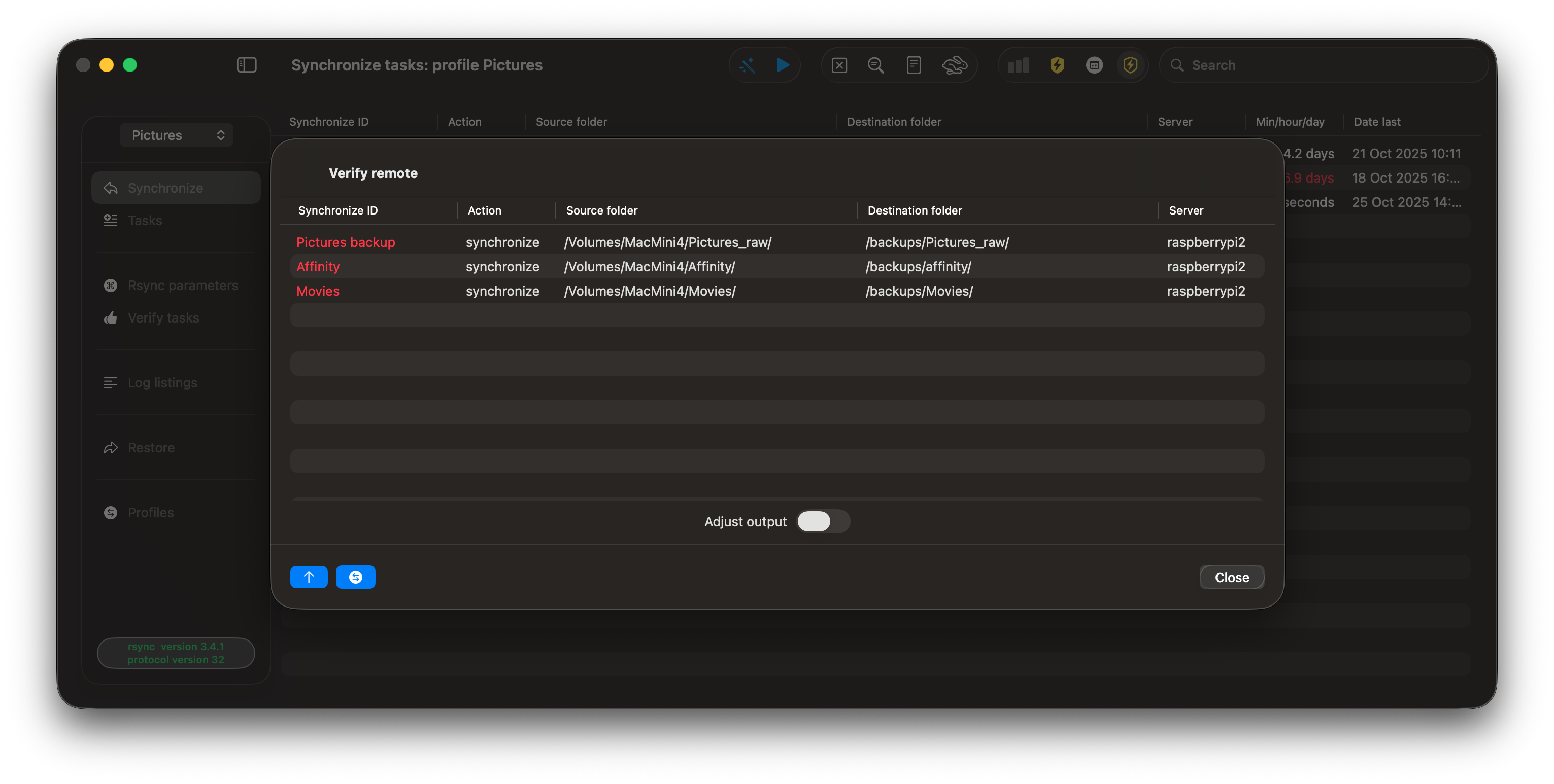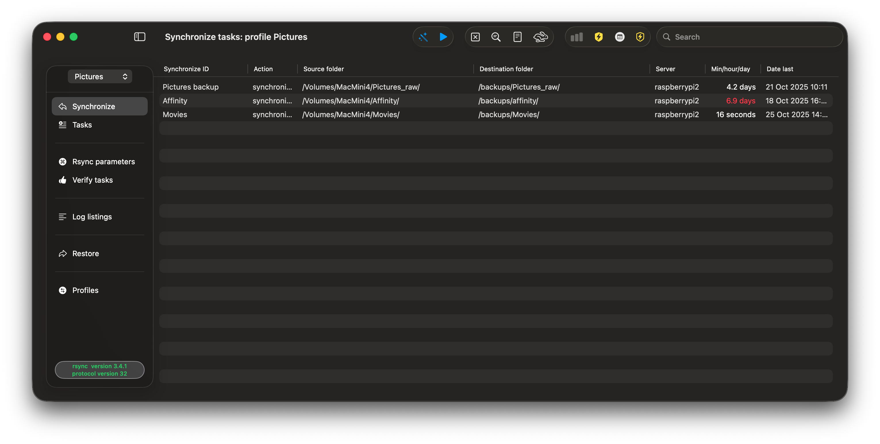 To display and access the toolbar actions for the two above mentioned functions, they must be enabled through the RsyncUI settings.